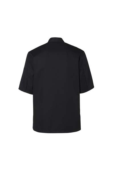 Son col officier affirme l’élégance professionnelle, tandis que sa poche stylo double compartiment sur manche gauche offre un rangement pratique pour les accessoires essentiels. Les pressions calottées gris assurent une fermeture fiable et durable. Le coloris noir intemporel convient à tous les environnements professionnels.