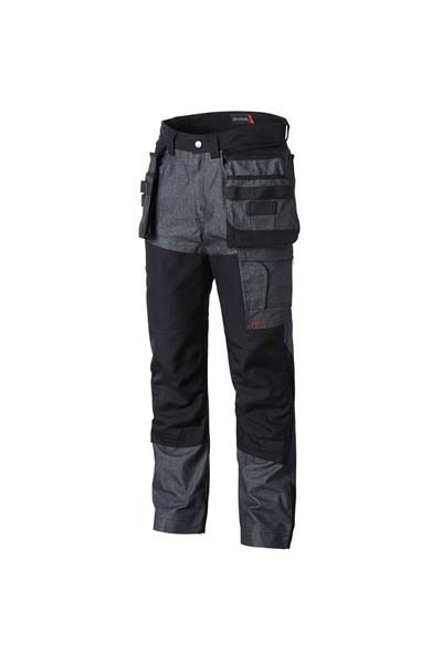 Ceinture innovante à réglage par élastique, 6 passants larges Cordura®, sangle accroche marteau ajustable et genoux préformés bi-stretch renforcé. Deux poches holster renforcées et amovibles par zips, poches cavalières cuir, poche smartphone inclinée, poches cuisse avec soufflet Cordura® à 2 parties, poches dos plaquées Cordura®, poche mètre compartimentée avec système de réglage pour outil long.