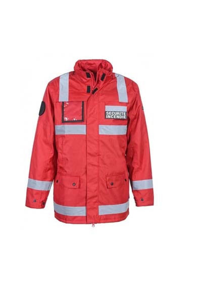 Réalisée en 100% polyester imperméable avec coutures étanches, doublure 100% polyester et nylon oxford, elle assure une protection efficace contre la pluie et le vent lors des longues stations en extérieur. Les bandes réfléchissantes renforcent la visibilité en conditions de faible luminosité. L’équipement en poches est généreux : 6 poches extérieures et 3 poches intérieures dont 1 poche téléphone. Le flap velcro amovible SÉCURITÉ INCENDIE, positionné poitrine et dos, est sortable et rentrable dans la poche selon les besoins du terrain. Le porte-écusson de 8 cm de diamètre sur l’épaule droite, la capuche intégrée au col, la ceinture élastiquée à la taille, les poignets réglables par pression et l’ouverture zippée bas du dos pour broderie complètent un équipement pensé pour les professionnels. Disponible en coloris rouge, du XS au 4XL.